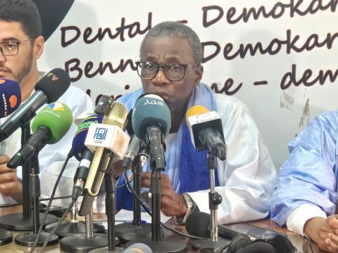 قال عضو قطب المعارضة الديمقراطية صمبا اتيام إن القطب نظم هذا المؤتمر الصحفي لدعوة الصحافة الوطنية إلى الاطلاع على خلفيات اللقاءات الأخيرة مع الرئيس محمد ولد الشيخ الغزواني المتعلقة بمسار الحوار الوطني، موضحًا أن القطب ي