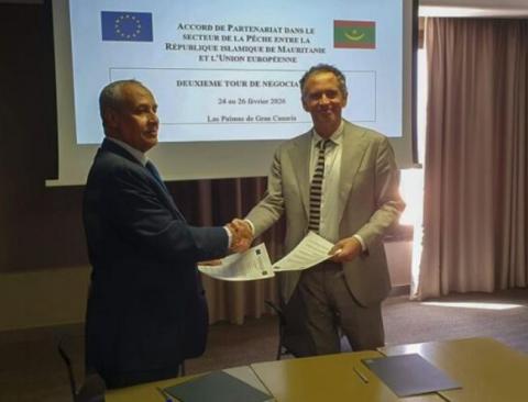 اختتمت بمدينة لاس بالماس الإسبانية أعمال الاجتماع التفاوضي بين موريتانيا والاتحاد الأوروبي بشأن تحيين بروتوكول الشراكة في قطاع الصيد، وذلك بتوقيع محضر الاجتماع من طرف رئيسي الوفدين، في مؤشر على استمرار الحوار الفني بين