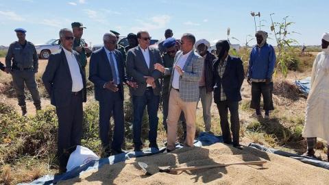 أدى والي ولاية لبراكنة، محمد ولد السالك، رفقة المدير العام للشركة الوطنية للتنمية الريفية (صونادير)، حماده ولد ديدي ولد سيداحمد، زيارة ميدانية إلى مزرعة بوكي النموذجية، للاطلاع على سير عمليات حصاد الأرز في إطار متابعة الموسم الزراعي الحالي.