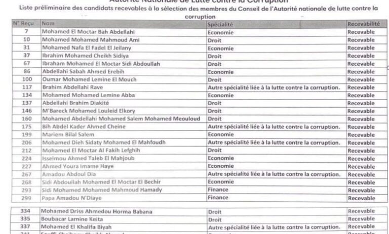 أعلنت السلطة الوطنية لمكافحة الفساد اعتماد لائحة أولية تضم 29 مترشحًا لعضوية مجلسها، وذلك بعد حصولهم على المعدلات المطلوبة وفق شبكة التقييم المعتمدة في عملية الانتقاء.