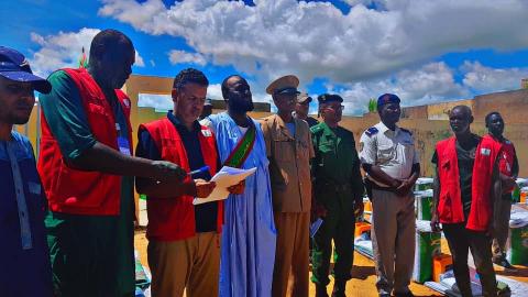 قدم الهلال الأحمر عن توزيع مساعدات غذائية وغير غذائية لصالح 140 عائلة متضررة من الفيضانات في مقاطعة غابو بولاية كيدي ماغا جنوب البلاد.