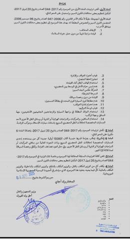زادت الحكومة من القيود المفروضة على السائقين بعد صدور مرسوم جديد، وقّعه الوزير الأول المختار ولد آجاي، يقضي بتعديل إحدى مواد المرسوم السابق المنظم لحركة المرور.
