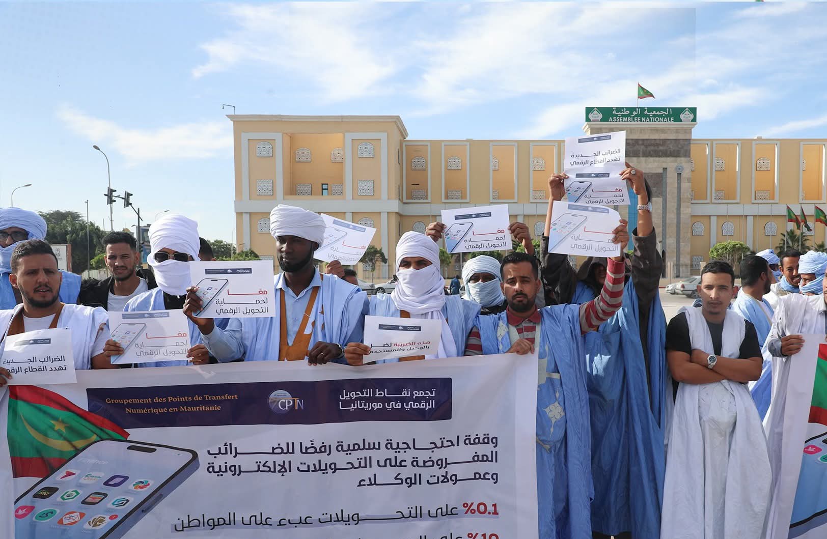نظم تجمع نقاط التحويل الرقمي وقفة احتجاجية أمام القصر الرئاسي في نواكشوط، رفضًا للضريبة المفروضة على التحويلات الإلكترونية، والتي دخلت حيز التنفيذ مؤخرًا.