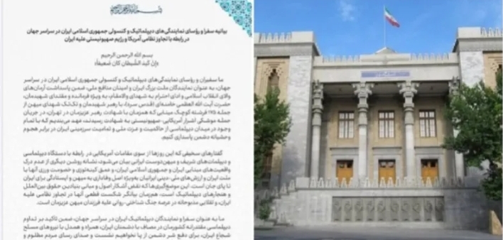 واختتم البيان بالتأكيد على تمسك الدبلوماسيين الإيرانيين بما وصفوه بمبادئ الثورة الإسلامية، معربين عن تقديرهم لما أسموه تضحيات "الشهداء"، ومؤكدين استمرارهم في الدفاع عن سيادة إيران ووحدة أراضيها في مواجهة ما وصفوه بالعدوان.