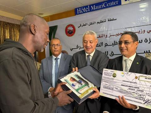 وجرى حفل توزيع الجوائز بحضور عدد من المسؤولين، من بينهم المندوب العام للأمن المدني وتسيير الأزمات، اللواء أبو المعالي الهادي سيدي ولد أعمر، ومستشار وزير التجهيز والنقل المكلف بالنقل، محمد ولد إبراهيم، إلى جانب الأمين العام لسلطة تنظيم النقل الطرقي، أعمر ولد أعل سالم، ورئيسة جهة نواكشوط، فاطمة بنت عبد المالك، وعدد من المسؤولين الإداريين والأمنيين، فضلاً عن ممثلين عن قطاع النقل.